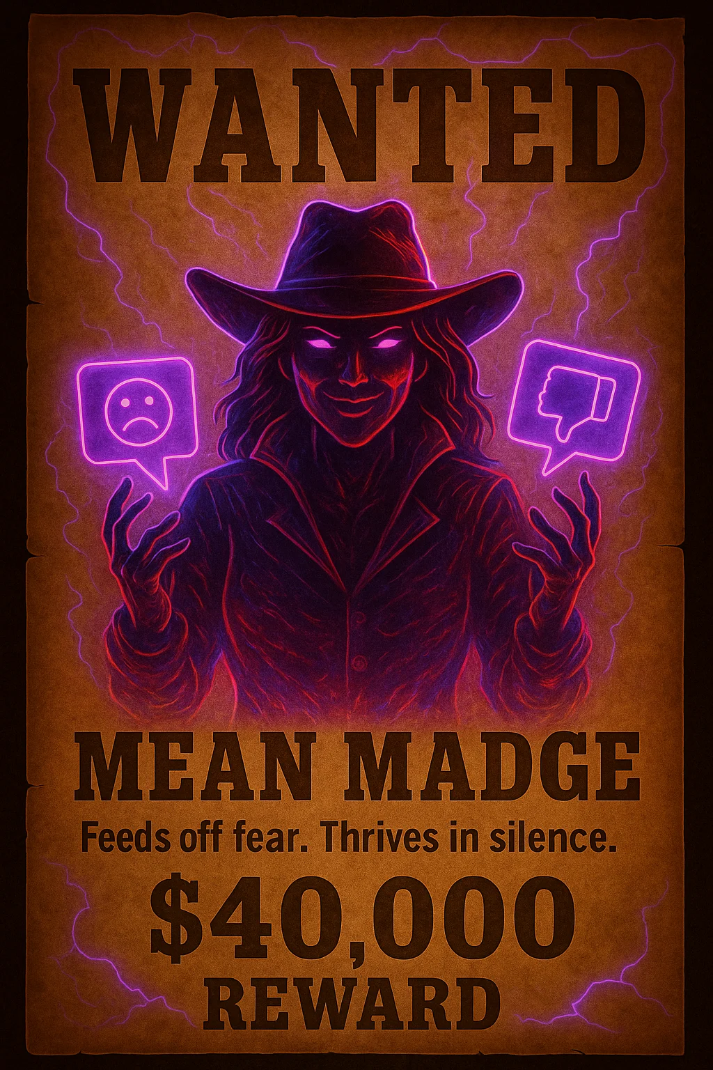 Mean Madge fires words instead of bullets – using insults, threats, and humiliation to cause chaos across forums and social feeds.